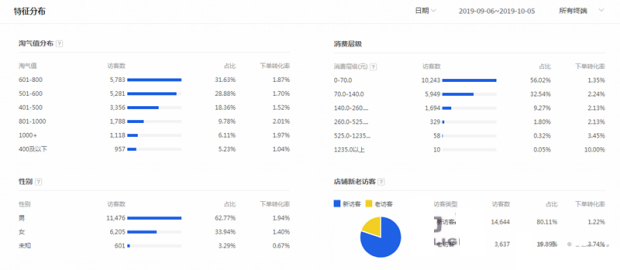人群特征主要分為訪客性別、訪客年齡段以及訪客消費能力等,不同類目的人群維度不同。主要分析目的,就是了解店鋪人群是否對店鋪內產品有需求